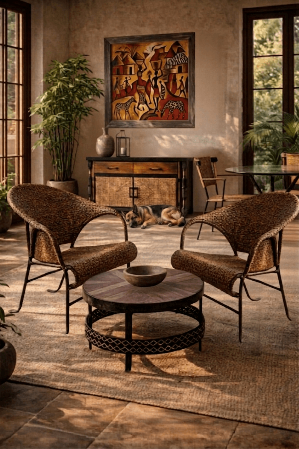 The Zulu Collection by Berenguer-Topacio pays tribute to the bold spirit of the Zulu people through a refined blend of hand-forged iron and woven rattan in a herringbone pattern. Braided handles evoke strength and heritage, while the iron frames provide both elegance and durability.